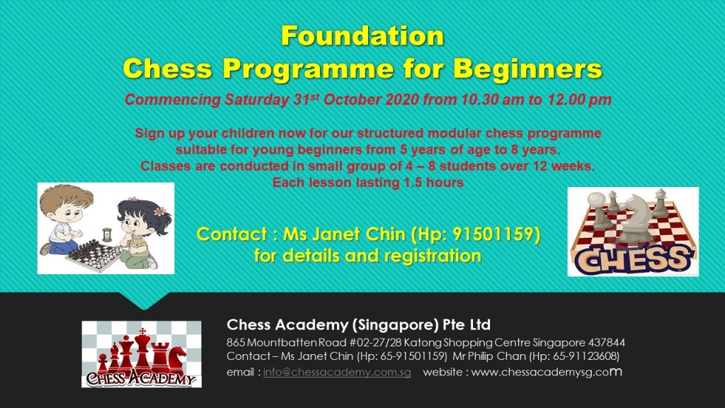 October 19, 2020October 19, 2020chessacademysg image Chess for Young Beginners Share this: Click to share on X (Opens in new window) X Click to share on Facebook (Opens in new window) Facebook Like Loading... Related