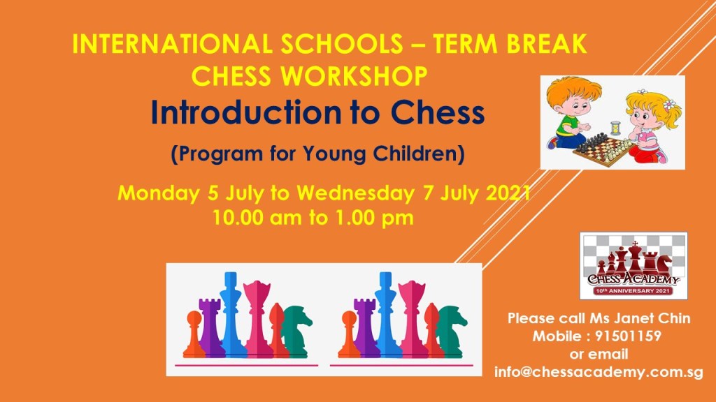 April 24, 2021April 24, 2021chessacademysg image International Schools Term Break Workshop Share this: Click to share on X (Opens in new window) X Click to share on Facebook (Opens in new window) Facebook Like Loading... Related