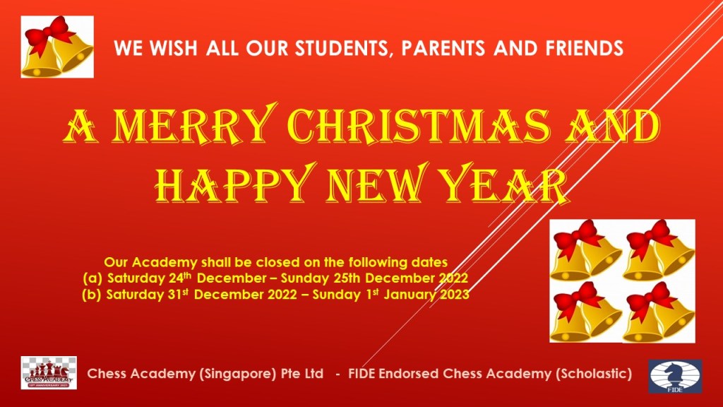 December 19, 2022December 19, 2022chessacademysg image FESTIVE SEASONS GREETINGS Share this: Click to share on X (Opens in new window) X Click to share on Facebook (Opens in new window) Facebook Like Loading... Related