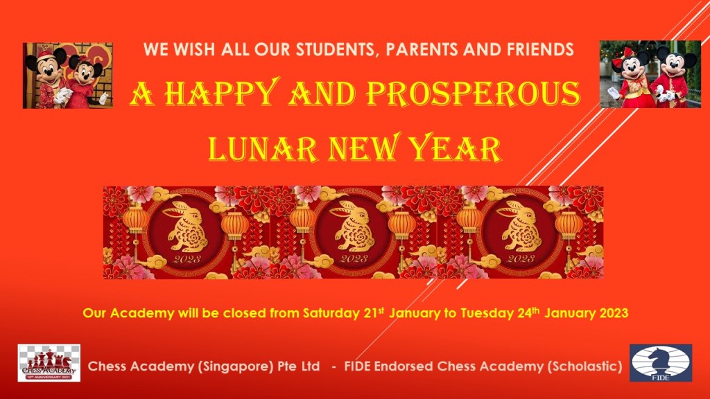 January 5, 2023January 5, 2023chessacademysg image Happy Lunar New Year Share this: Click to share on X (Opens in new window) X Click to share on Facebook (Opens in new window) Facebook Like Loading... Related