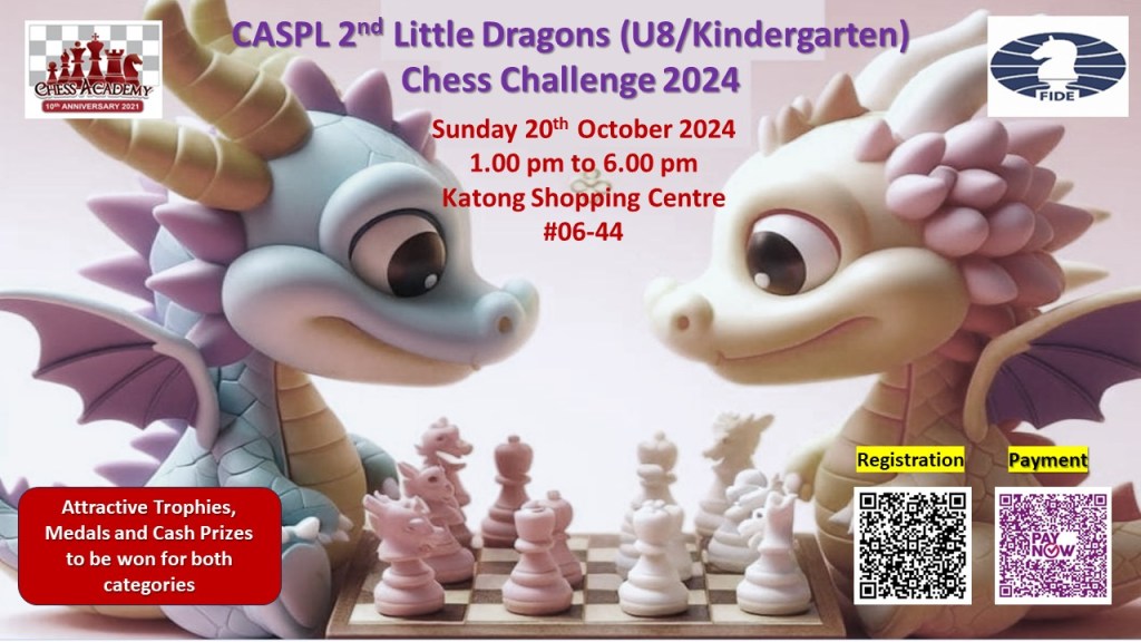September 12, 2024September 12, 2024chessacademysg image CASPL 2nd Little Dragons (U8/Kindergarten) Chess Challenge 2024 Share this: Click to share on X (Opens in new window) X Click to share on Facebook (Opens in new window) Facebook Like Loading... Related
