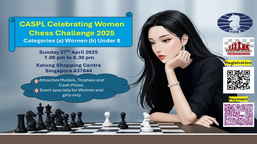 April 21, 2025April 21, 2025chessacademysg image CASPL Celebrating Women Chess Challenge 2025 Share this: Click to share on X (Opens in new window) X Click to share on Facebook (Opens in new window) Facebook Like Loading... Related