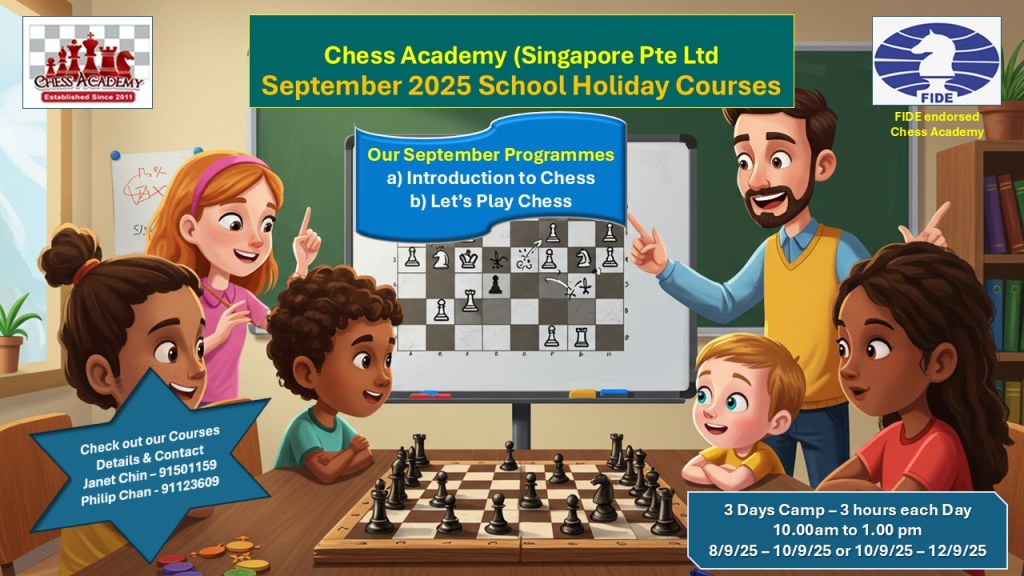 August 29, 2025August 29, 2025chessacademysg image September 2025 School Holiday Program Share this: Click to share on X (Opens in new window) X Click to share on Facebook (Opens in new window) Facebook Like Loading... Related